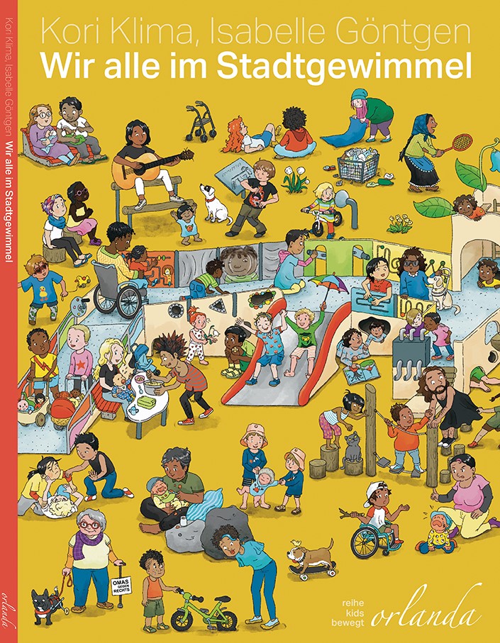 Mit „Wir alle im Stadtgewimmel“* legen Kori Klima und Isabelle Göntgen wertschätzend den Fokus auf Diversität, Vielfalt, Sichtbarkeit, Perspektivwechsel, Intergration und Inklusion. So werden unter anderem Menschen mit und ohne Behinderungen verschiedenen Alters und Körperformen aller Art, vielfältige Beziehungs- und Familienkonstellationen, Kulturen und Überzeugungen, aufgebrochene Geschlechterklischees gezeigt; Alltagssituationen urbanen Zusammenlebens mit selbstverständlicher Teilhabe.