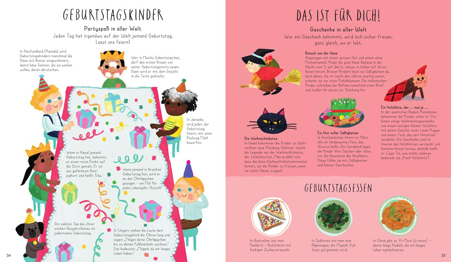 Kunterbunt und vielfältig sind auch die Illustrationen von Harriet Lynas. Detailreich, liebevoll und spielerisch regen diese zum Erkunden an. Ein wundervolles Sachbilderbuch, mit dem Jung und Alt verschiedene Kulturen sowie verschiedene Teile der Welt kennenlernen und das dazu einlädt, kulturelle Unterschiede sowie deren Schönheit und Einzigartigkeit zu verstehen: Wir sind alle Menschen, auch wenn wir unterschiedlich sind.