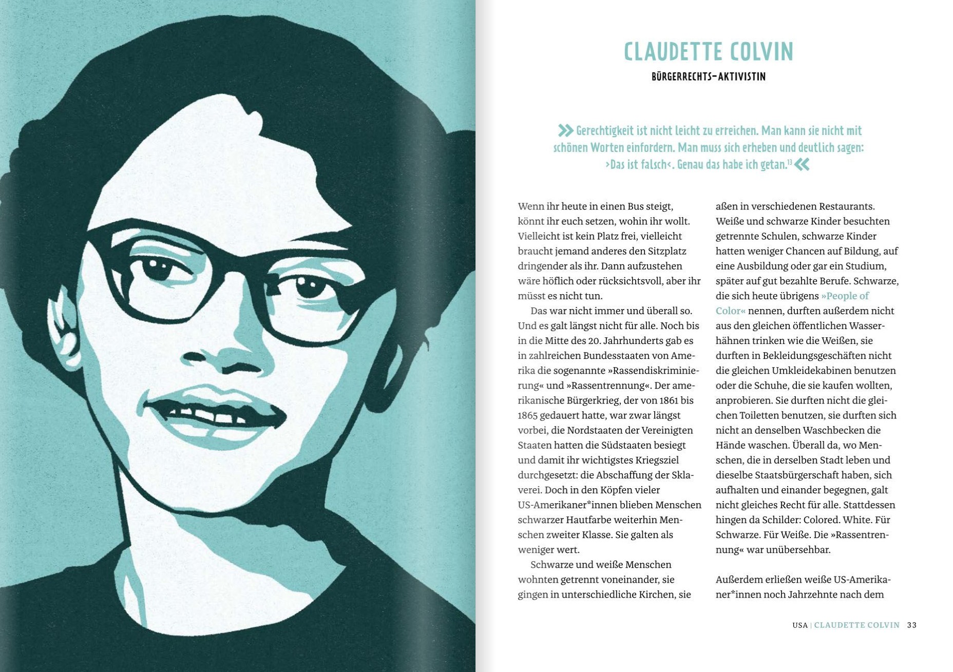 Neben den wichtigsten Daten werden Hintergründe erläutert, Aktionen vorgestellt sowie auch deren Probleme, Hindernisse und Herausforderungen gezeigt. Alle Geschichten machen deutlich, wie unglaublich wichtig es ist nicht wegzusehen, sondern mitzumischen. Jede und jeder kann die Welt ein bisschen besser machen und dazu beitragen, Dinge zu verändern. Aktiv zu werden, in welcher Form auch immer. Im Großen wie im Kleinen. Denn auch viele kleine Dinge können die Welt bewegen.